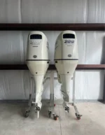 A reliable and efficient 200 hp four-stroke V6 outboard, the Suzuki DF200 is designed for smooth power delivery and good fuel economy, featuring multi-point sequential electronic fuel injection and remote steering.